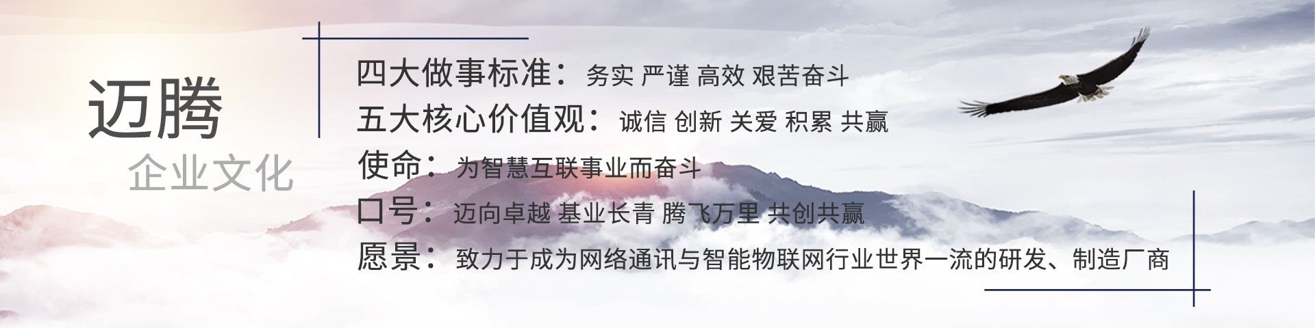 深圳市邁騰電子有限公司(簡稱邁騰),成立于2008年2月,是一家專注于網絡通訊與物聯(lián)網產品開發(fā)、生產、銷售及服務為一體的國家級高科技企業(yè)。目前是國、內外網絡通訊與物聯(lián)網行業(yè)前列的研發(fā)、制造廠商。